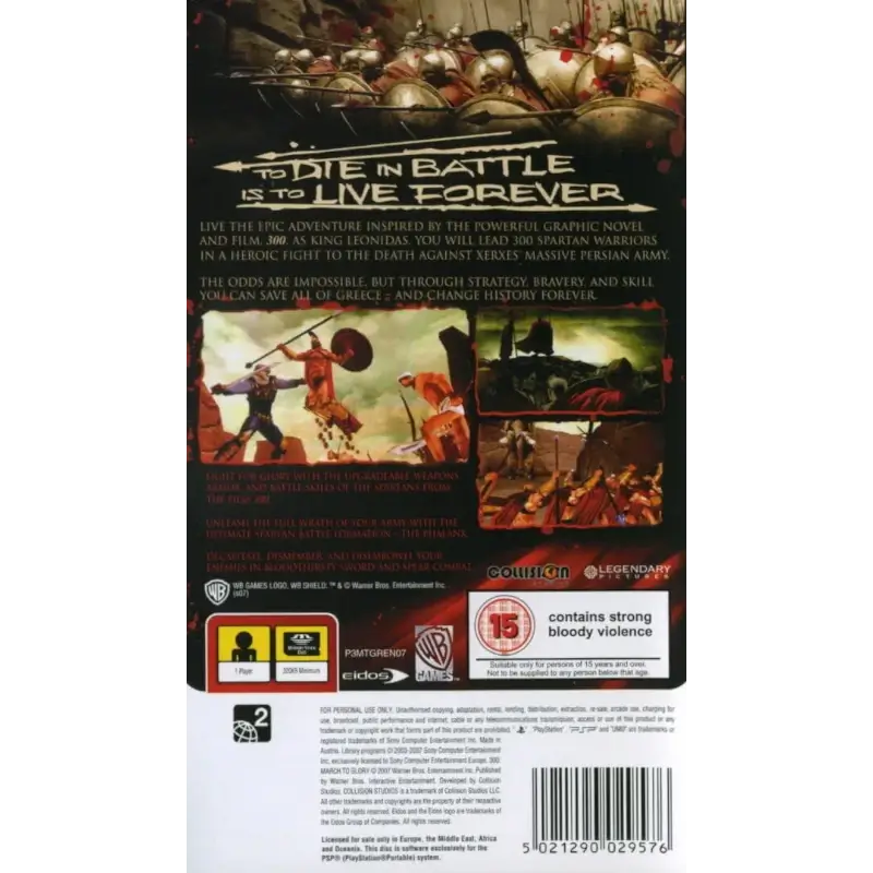 300: March to Glory é um videogame da desenvolvedora americana Collision Studios para o PlayStation Portable que foi lançado em 27 de fevereiro de 2007.