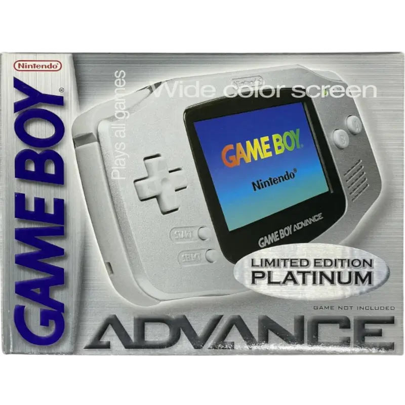 A consola Game Boy Advance Platinum é uma versão elegante e moderna da icónica portátil da Nintendo, distinguindo-se pelo seu acabamento metálico prateado que lhe confere um aspeto sofisticado e contemporâneo.