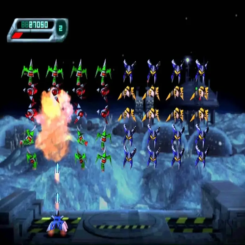 Pode jogar um ou dois jogadores contra os Invasores, que marcham pelo ecrã em filas e colunas ordenadas, a um de três níveis de habilidade. Começará em Plutão e trabalhará o seu caminho através do Sistema Solar até Marte, depois Vénus, e finalmente Terra. Existem quatro alienígenas comuns (vermelho, verde, azul, e amarelo), mais sete menos comuns. Recebe potências especiais de um tiro ao disparar quatro do mesmo tipo de Invasores numa fila. Tal como no jogo original, existem também naves-mãe que voam acima da acção, mas nesta versão, se lhes acertar, pode apanhar outros power-ups úteis como escudos ou tiros duplos. Além disso, depois de lutar contra várias ondas em cada planeta, enfrentará um chefe único. Se conseguir terminar o jogo, será capaz de jogar uma reprodução da moeda original.