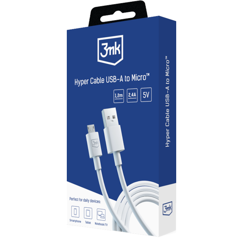 3MK HYPER CABLE USB-A PARA MICRO 1.2M (BRANCO)