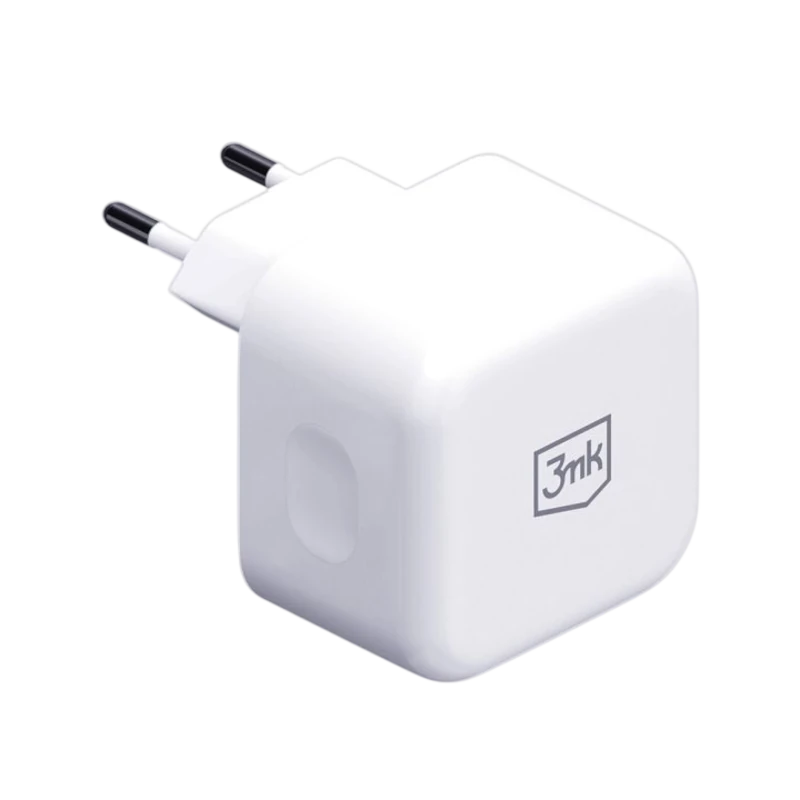 Este carregador de parede, produzido pela marca 3MK, oferece uma potência máxima de 35 W.O adaptador funciona com entrada de 100-240 V~50/60 Hz, o que significa que pode ser usado internacionalmente (com adaptador de tomada adequado) e é declarado como tendo uma corrente de entrada de 1 A.Uma das suas características mais interessantes é o design: o plugue é avaliado com entrada a 90°, permitindo que fique bem encaixado em tomadas que estão atrás de móveis ou em locais apertados, e as portas USB-C estão dispostas na parte inferior do corpo (em vez da lateral), o que reduz o risco de danificar o cabo ou de o carregador ficar espetado para fora.