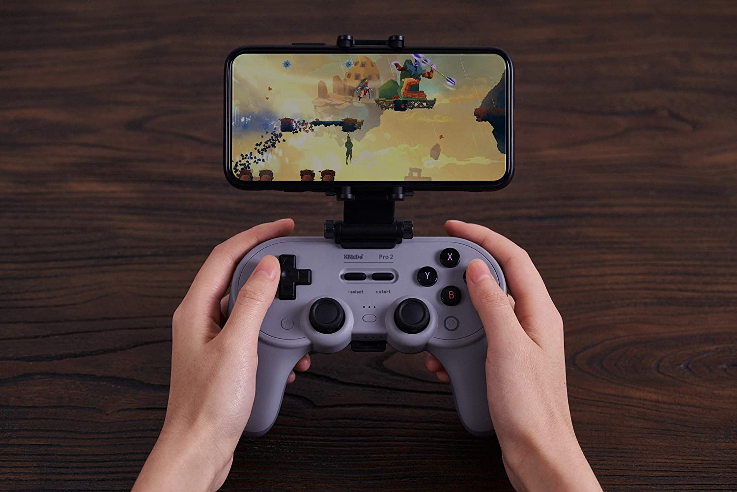 Desenho de posicionamento ajustável de 2 eixos. Rápido e fácil de instalar o seu controlador e telemóvel. Abs plástico combinado com material de liga de alumínio. Compatível com os blocos de jogo 8Bitdo Pro 2 Bluetooth.
