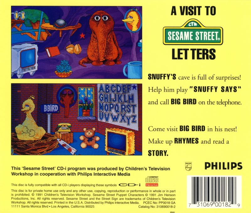 A Visit to Sesame Street: Letters é um título de eduentretenimento para crianças pequenas. Tenta familiarizá-las com o alfabeto. O jogo é semelhante ao da Rua Sésamo: Números, excepto o conteúdo.
