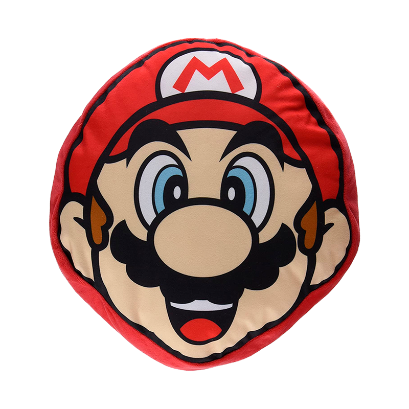 Almofada recheada com aproximadamente 30 cm de altura do rosto do Mario, personagem principal dos videogames Super Mario.
