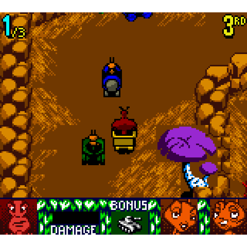 Antz Racing GBC! Os jogadores mergulham em um mundo vibrante e colorido, onde controlam personagens adoráveis em competições de corrida frenéticas.