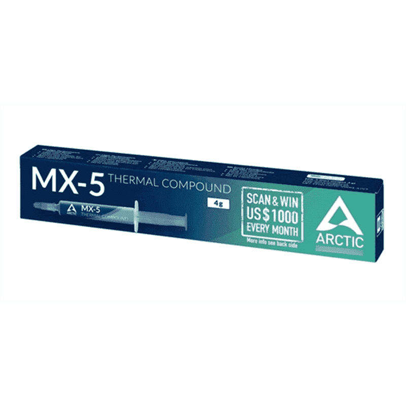 A pasta térmica MX-5 da ARCTIC é composta por micropartículas de carbono que preenchem pequenas cavidades na base de processadores e coolers. Isso leva a uma alta condutividade térmica, garantindo que o calor seja dissipado de forma eficiente.