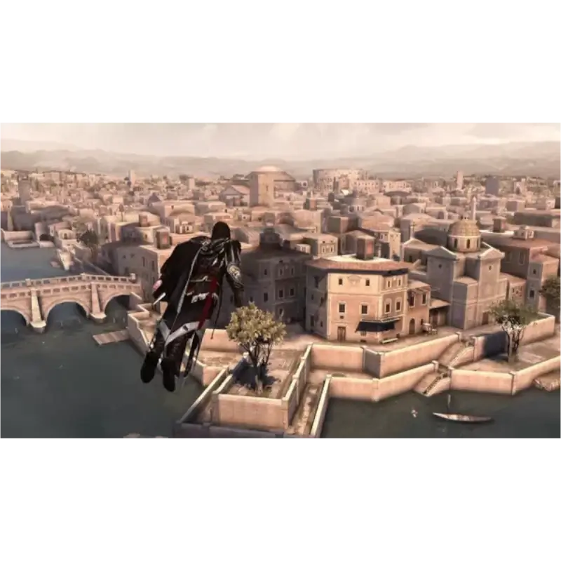 Assassins Creed Brotherhood PS3! Os Assassinos modernos, incluindo Desmond Miles, fogem e se escondem dos Templários. Eles se refugiam na moderna Monteriggioni, que foi preservada como um local histórico. Lá, eles configuram o Animus para Desmond explorar mais profundamente o passado de Ezio e descobrir mais sobre as peças perdidas do Éden. A história de Ezio ocorre imediatamente após o final de Assassin’s Creed II, e ele deixa Roma para voltar para Monteriggioni. Lá, ele é emboscado e o Pedaço do Éden que ele encontrou é roubado. Ele deve voltar para Roma, que já foi tomada pelos Bórgia, resgatar seu povo e recuperar o que foi perdido.