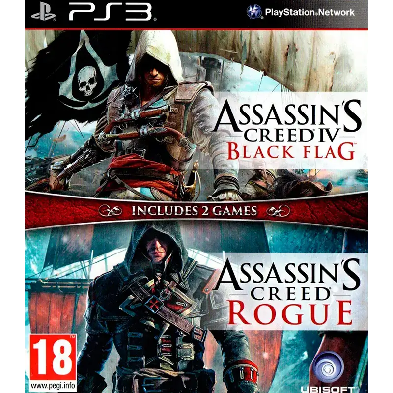 ASSASSIN’S CREED IV BLACK FLAG + ASSASSIN’S CREED ROGUE PS3 (SEMI-NOVO)