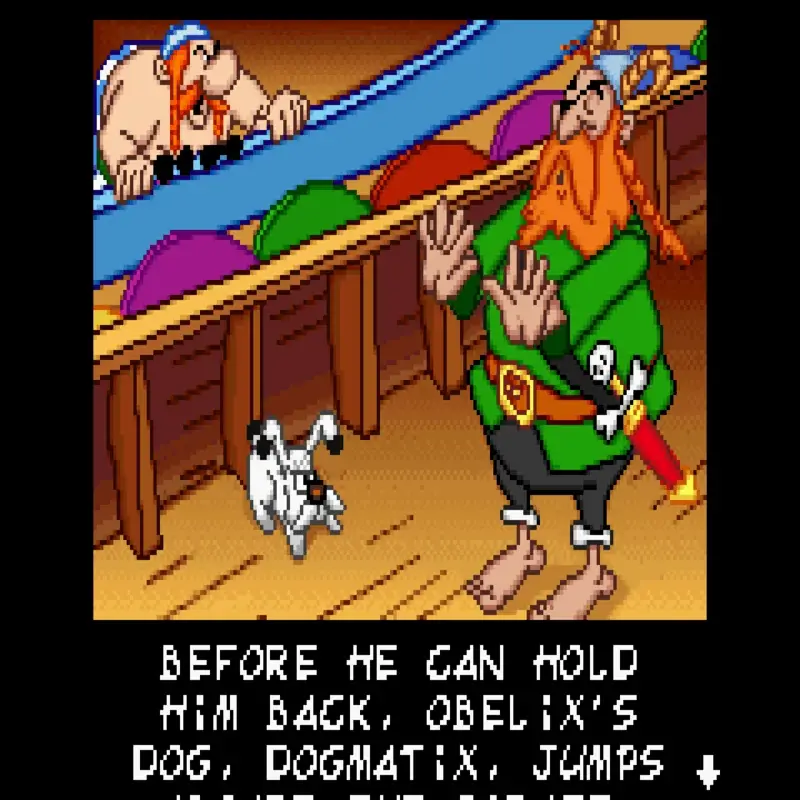 O jogador pode assumir o controle de Astérix ou Obélix em fases repletas de inimigos romanos, piratas e outras figuras típicas do universo da série, avançando por cenários que remetem às aventuras dos quadrinhos.