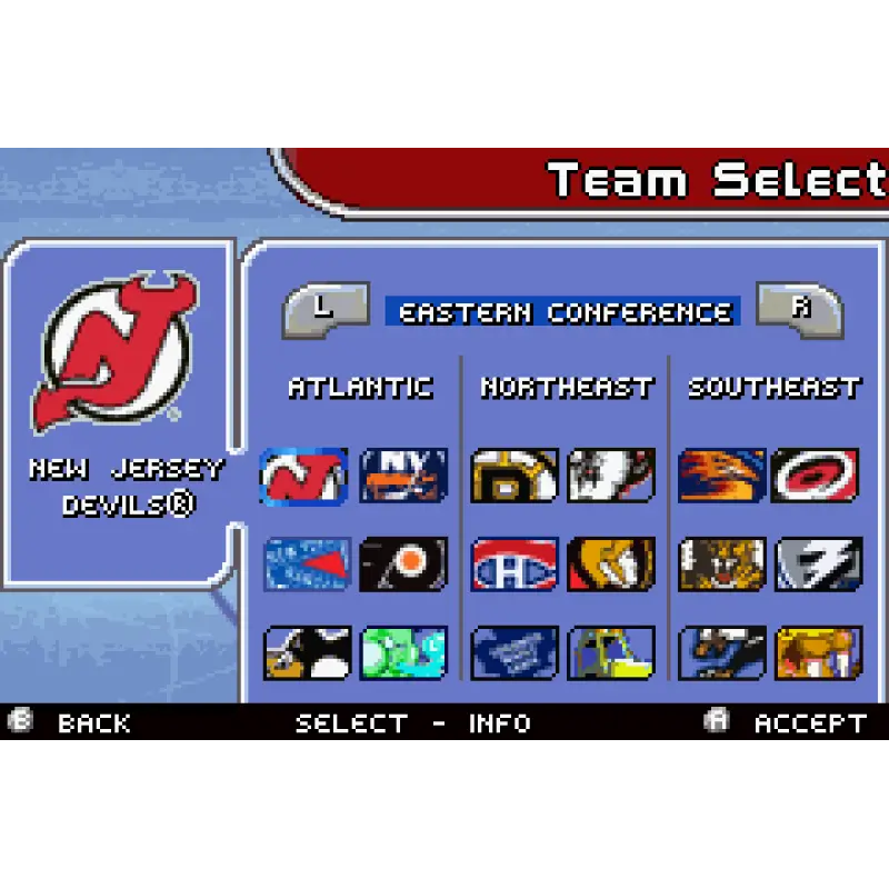 Ele permite escolher entre versões “infantis” de astros reais da NHL, como Steve Yzerman ou Mike Modano, ao lado de personagens fictícios já conhecidos da franquia, cada um com características próprias de velocidade, força e habilidade.
