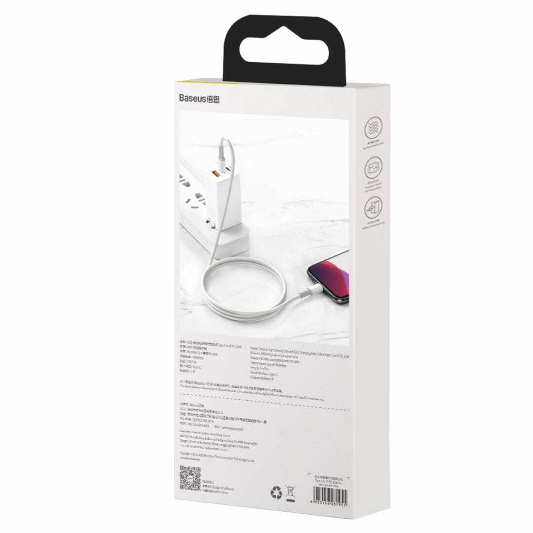 Cabo Baseus High Density PD USB-C – Lightning 2,0 m branco 20W