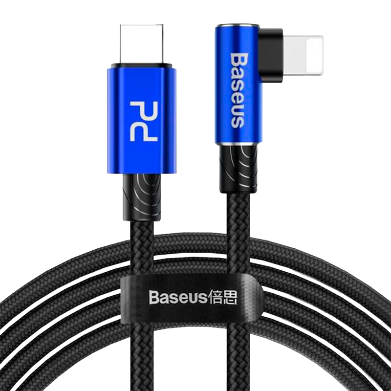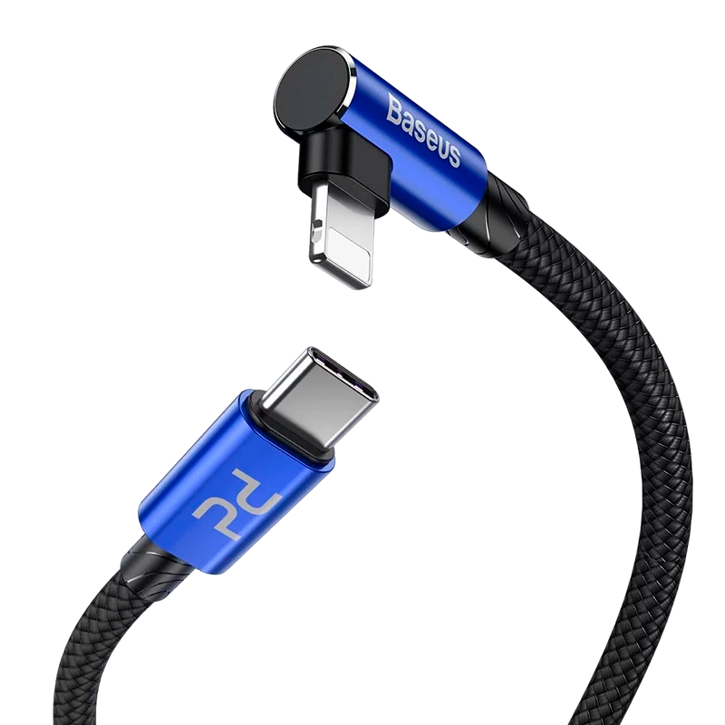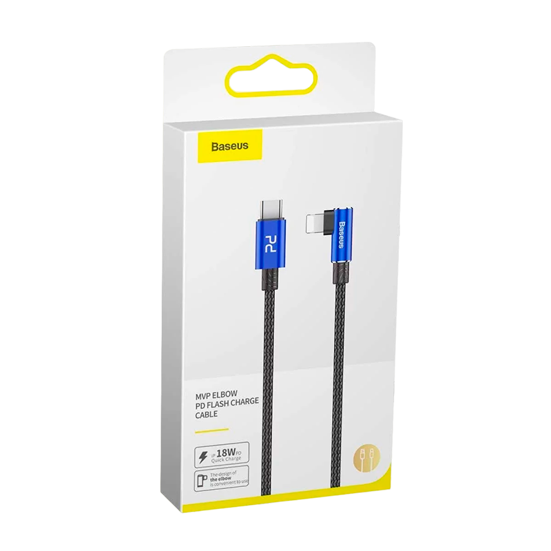 BASEUS CABO EM COTOVELO MVP TYPE-C PARA LIGHTNING 1MT 18W (PRETO/AZUL)