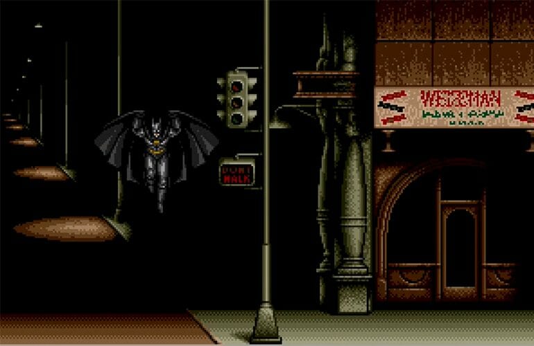 O jogo consiste em seis etapas, quatro de acção de plataforma de scrolling lateral e duas de atirador de scrolling lateral, na seguinte ordem: Gotham City Street, Axis Chemical Factory, Flugelheim Museum, Gotham City Street (com o Batmobile e depois disso a pé), In the Sky over Gotham City (com o Batwing) e a Catedral, onde o Batman finalmente enfrenta o Joker.