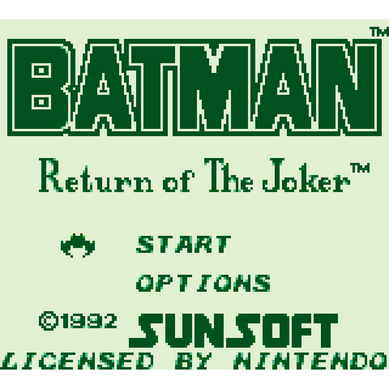Batman: Return of the Joker para Game Boy é um jogo de plataforma no qual o Cavaleiro das Trevas deve cruzar quatro níveis para enfrentar seu arquiinimigo, o Joker.
