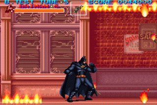 Existem duas variedades de níveis de beat’em’em up. Uma joga como Final Fight e jogos semelhantes: O Batman pode mover-se em duas dimensões, batendo nos seus inimigos com vários murros, pontapés, combos e movimentos especiais. Os gadgets especiais a serem utilizados incluem o famoso Batarang para derrotar inimigos à distância e “Test Tubes” cheios de explosivos químicos que irão danificar todos os inimigos no ecrã.