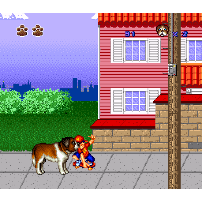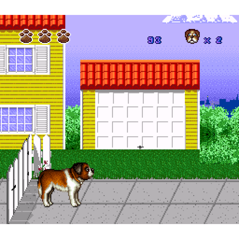 Seus quatro filhotes precisam ser resgatados e trazidos de volta para a mãe. Como pai e tutor responsável, primeiro você precisa encontrar o filhote, evitando perigos como gatos mal-humorados, caçadores de cães malvados, bolotas que têm o hábito de cair. apenas quando você passa por baixo, e skatistas descuidados. Você pode latir para esses oponentes para assustá-los. E se você encontrar uma fonte de água (como uma mangueira de borracha), você pode se molhar e então – em um estado tenso situação – sacuda a água, eliminando todos os que estão nas proximidades.