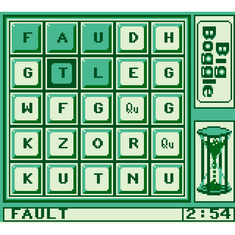 Boggle Plus é uma adaptação do jogo de construção de palavras em que os jogadores devem formar palavras a partir de letras adjacentes em uma grade atribuída aleatoriamente dentro de um limite de tempo.