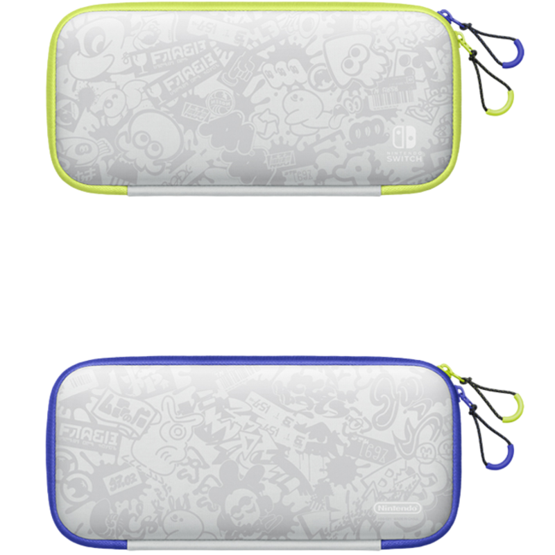 Bolsa De Transporte Nintendo Switch-OLED – Com um design inspirado nos elementos visuais únicos da franquia Splatoon, a bolsa contem padrões dinâmicos que lembram a estética dos Inklings e Octolings.