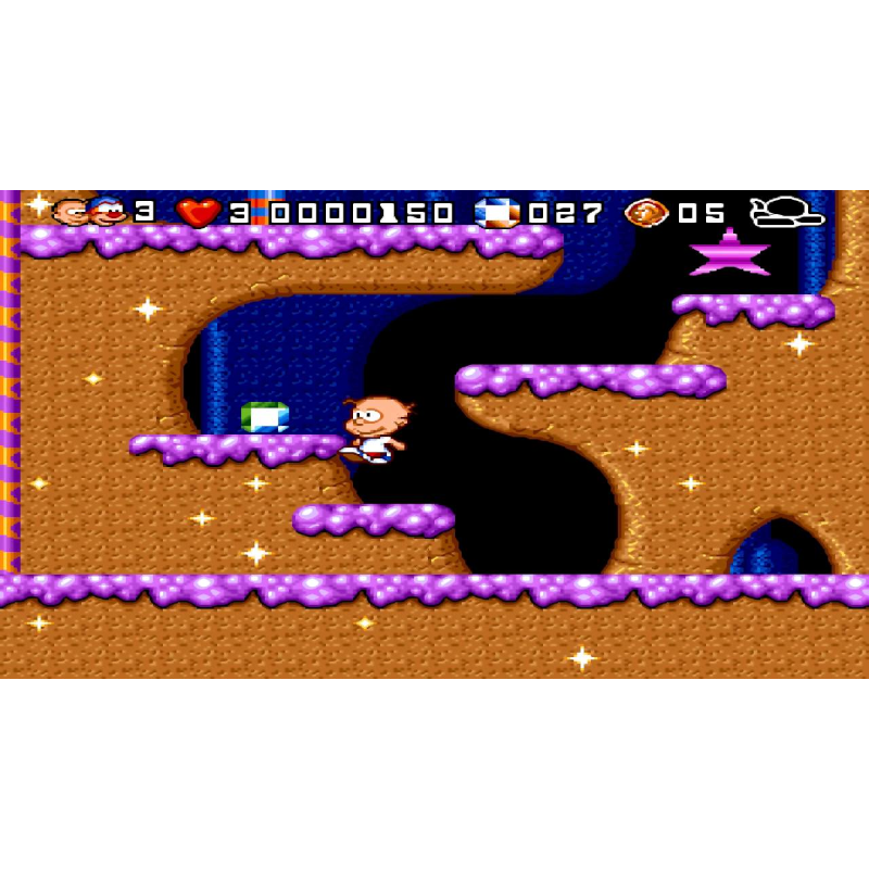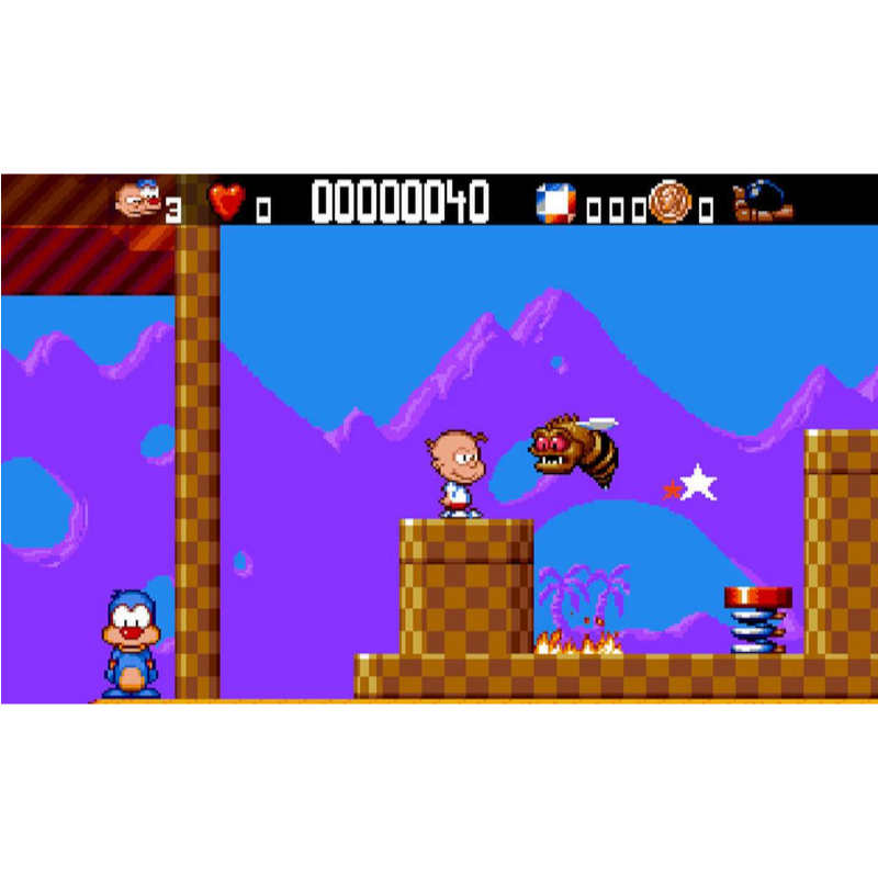 Bubble and Squeak começa de forma semelhante a muitos outros jogos de plataforma. Controlando uma criança careca, você se move por uma série de saliências, evitando o contato com inimigos que soltam moedas quando são baleados. Existem áreas escondidas para encontrar também.