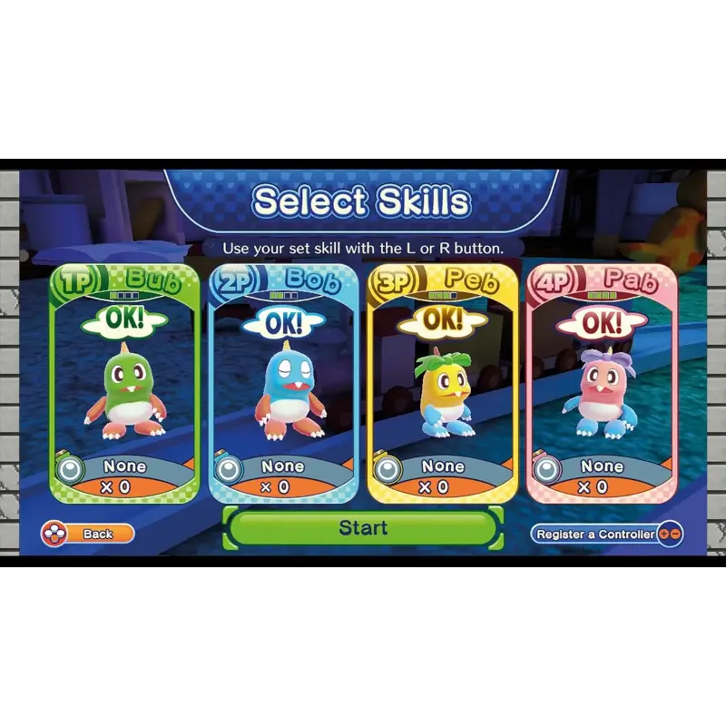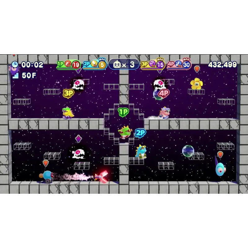 O jogo combina o charme retro do Bubble Bobble de 1986 com gráficos modernos e coloridos, mantendo o ambiente alegre e divertido que caracteriza a série. Com níveis desenhados para proporcionar uma jogabilidade rápida e acessível, podes jogar sozinho ou com até quatro jogadores em modo cooperativo local, tornando-o ideal para sessões de jogo em família ou entre amigos.