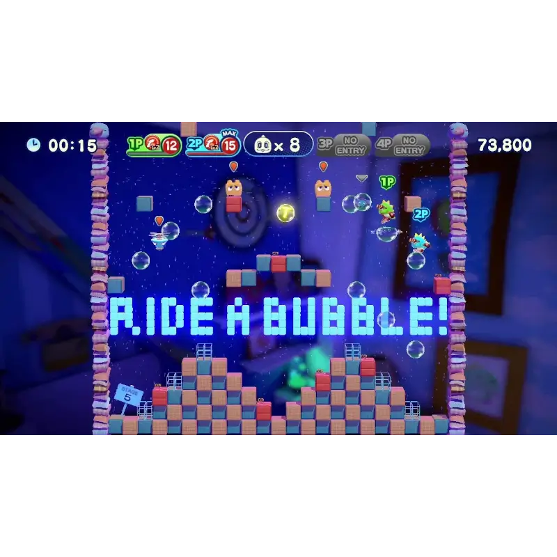 Trata-se de uma versão expandida de Bubble Bobble 4 Friends, trazendo de volta o lendário vilão Baron von Blubba e novos desafios para os fãs da série. Neste jogo, controlas Bub e Bob, dois pequenos dragões que lançam bolhas para capturar inimigos. Uma vez presos, os inimigos podem ser eliminados ao rebentar as bolhas, uma mecânica simples mas viciante que se mantém fiel ao espírito dos jogos originais.