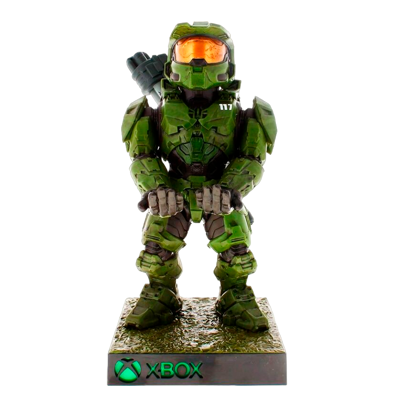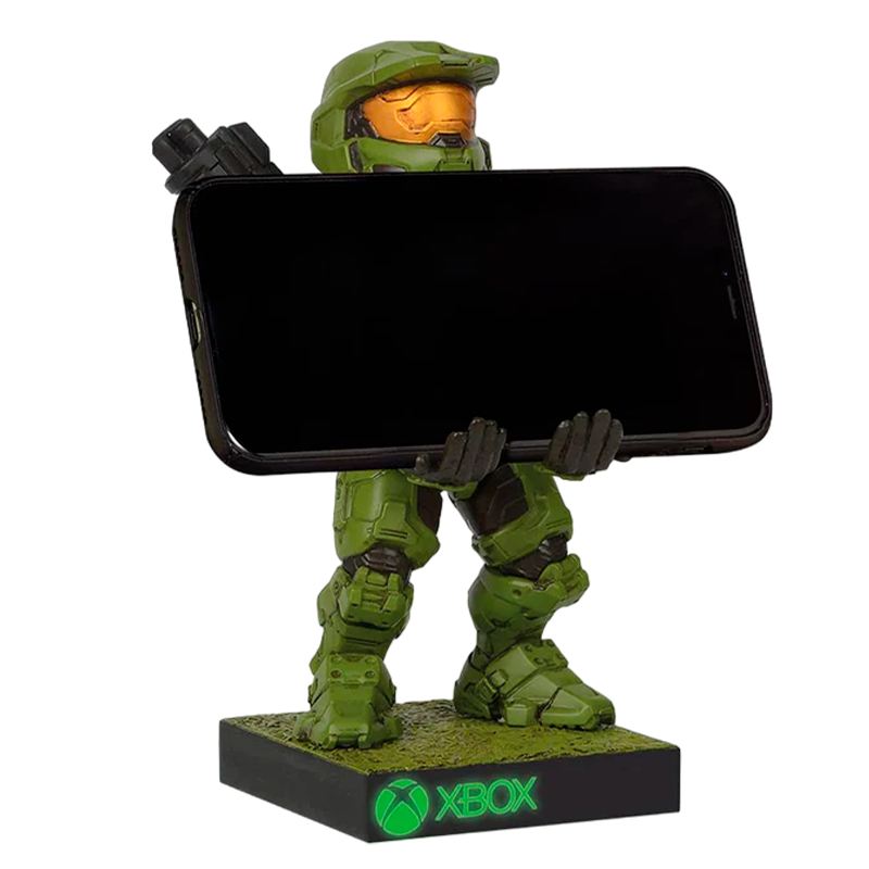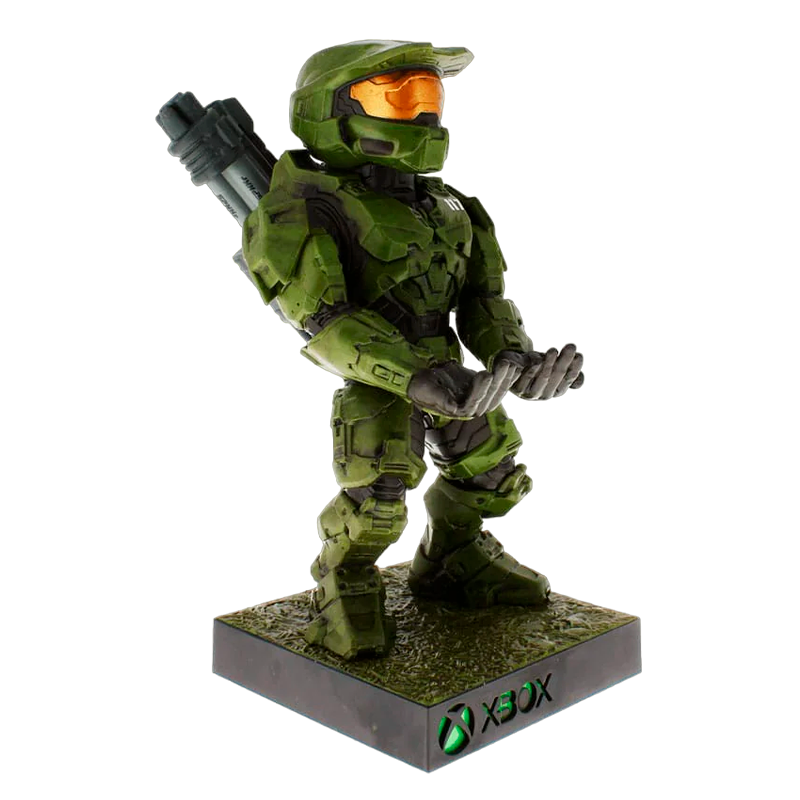 O Master Chief segura o cabo de forma segura, enquanto a base está equipada com uma entrada USB para carregar o seu smartphone, tablet, controlador de jogo ou outros dispositivos. Esta peça não só cumpre a sua função prática, mas também adiciona um toque de nostalgia e admiração à sua área de jogo ou escritório.
