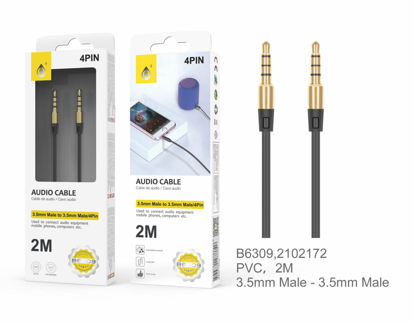 CABO AUDIO JACK 3.5MM 4 PIN 2 MTS B6309 (PRETO)