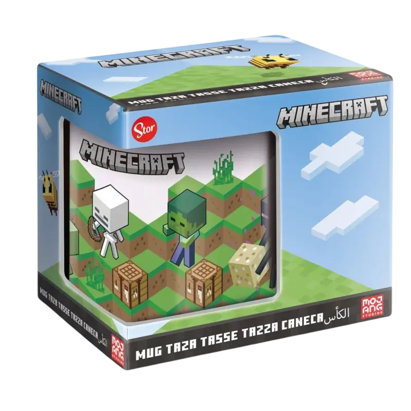 A caneca Minecraft (Campo) 325ml apresenta um design inspirado no universo do famoso jogo, com cores vibrantes e elementos característicos do mundo pixelado.