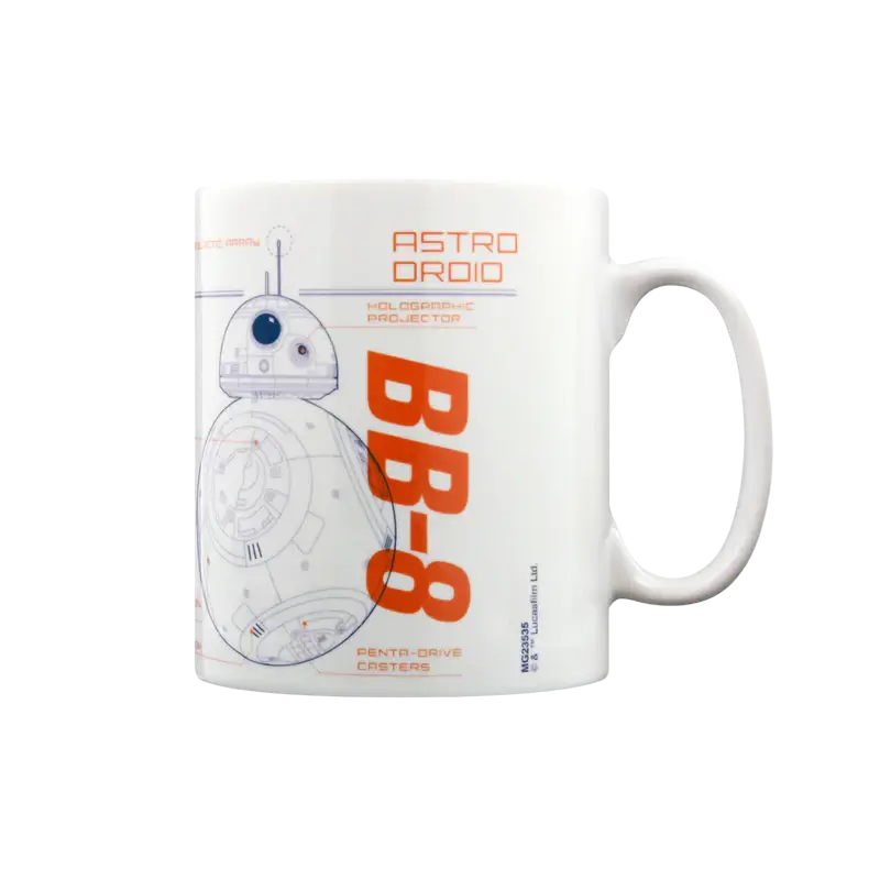 Com capacidade para 320 ml, apresenta um design exclusivo que combina praticidade e estilo, trazendo uma ilustração detalhada de BB-8 em estilo sketch, como se fosse um desenho técnico ou esboço artístico. O acabamento destaca os traços do personagem em contraste com o fundo, transmitindo a sensação de autenticidade e ligação direta com o universo Star Wars. Produzida em material resistente e de alta qualidade, a caneca é ideal tanto para o uso diário quanto para compor a coleção de quem aprecia itens temáticos. Oficialmente licenciada pela Disney, garante não apenas funcionalidade, mas também um toque especial de nostalgia e personalidade para os momentos de café, chá ou qualquer outra bebida favorita.