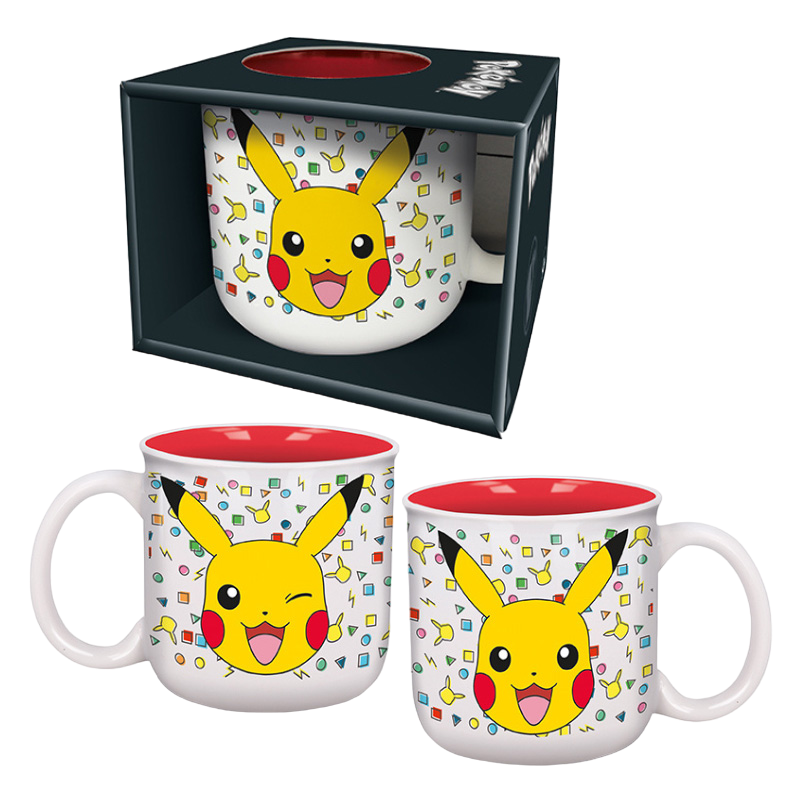 A caneca Pokémon Pikachu branca de 325ml é uma adorável peça de colecionador para fãs de Pokémon.