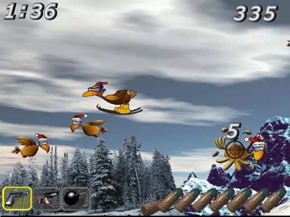 Digitale Hühnerjagd é um jogo de tiro baseado no jogo de navegador Sumpfhuhn e semelhante ao Moorhuhn.