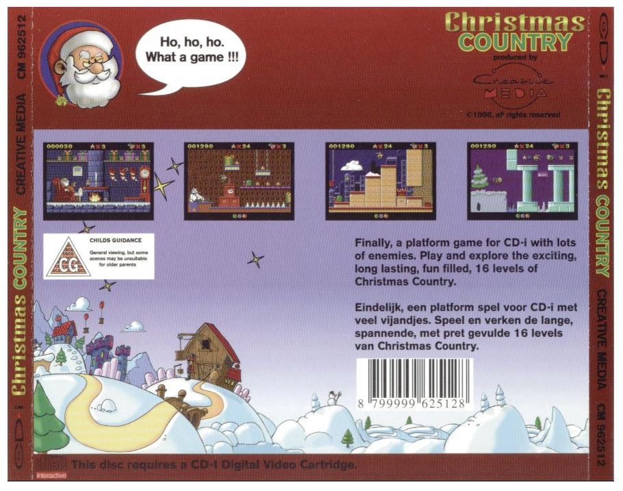 Christmas Country é um jogo de plataforma 2D para o CD-i com um cenário de Natal.