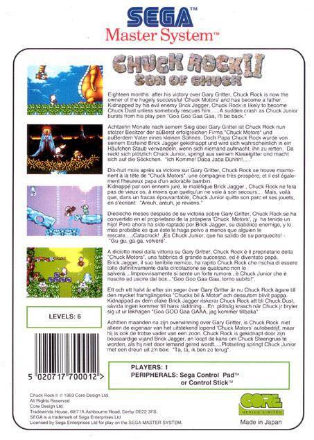 A história neste jogo Chuck Rock demora um pouco depois do fim do primeiro jogo. Como se deve lembrar, Chuck Rock teve de salvar a sua menina, Ophelia do mauzão Gary Gritter. Bem, ele teve sucesso nos seus esforços, e agora Chuck e Ophelia são casados. Eventualmente, eles têm um filho, chamado Junior. Chuck trabalha numa fábrica, onde desenvolve grande habilidade em esculpir automóveis em pedra. Um fabricante rival fica com inveja das capacidades de Chuck e raptam-no. Agora cabe a Júnior salvar o seu pai!
