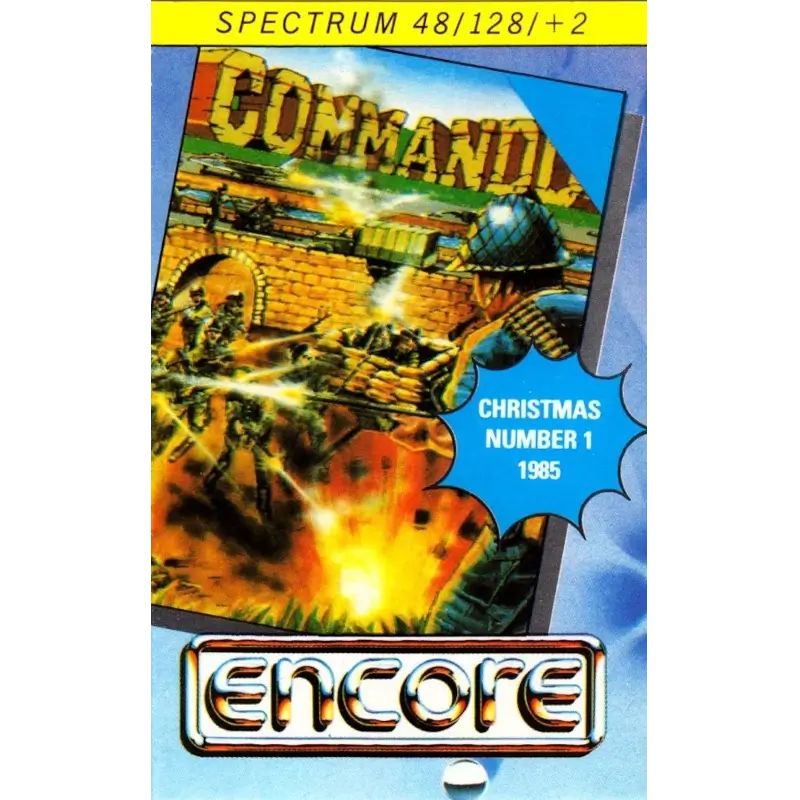 Commando é um jogo de ação e tiro na vertical, lançado em 1985 para o ZX Spectrum, baseado no popular jogo de arcada da Capcom.