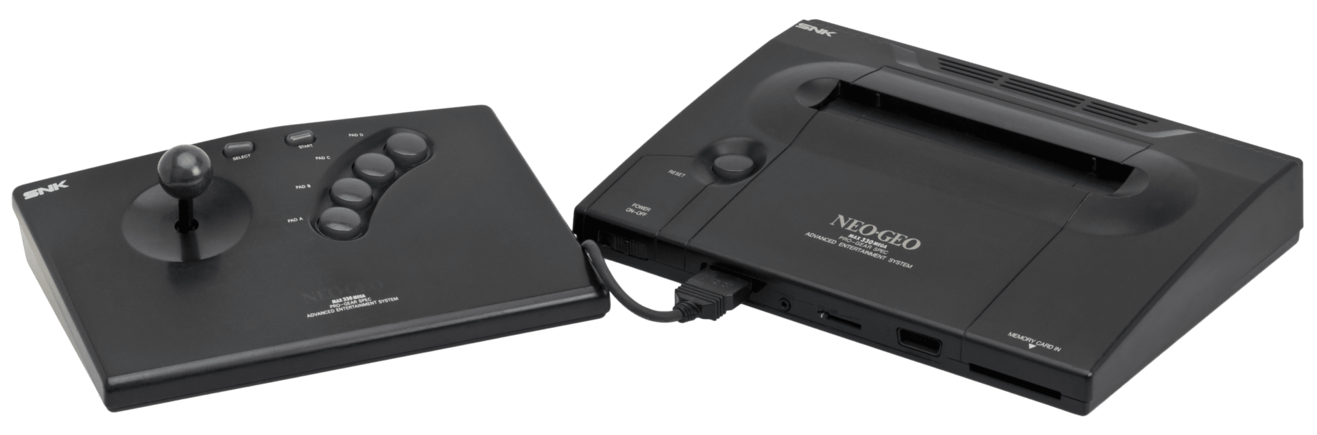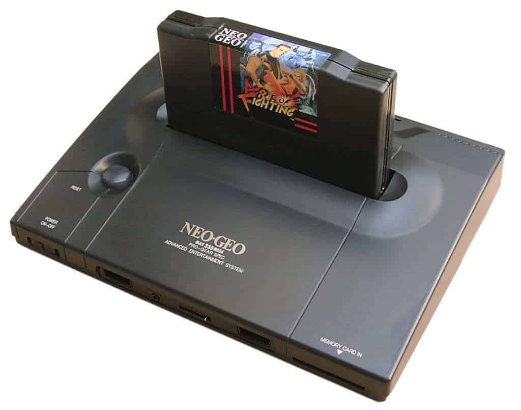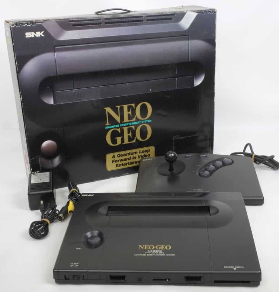 O Neo Geo foi originalmente lançado como a máquina de arcada operada por moedas MVS (Multi Video System). O MVS oferece aos proprietários a capacidade de colocar até seis cartuchos diferentes num único armário, uma característica única que era também uma consideração económica fundamental para os operadores com espaço limitado, bem como poupar dinheiro a longo prazo. Com os seus jogos armazenados em cartuchos autónomos, um armário de jogos pode ser trocado por um título de jogo diferente, trocando o cartucho ROM do jogo e a arte do armário. Foi também feita uma versão de consola doméstica, chamada AES (Advanced Entertainment System). Foi originalmente lançada como uma consola de aluguer para lojas de videojogos no Japão (chamada Neo Geo Rental System), com o seu preço elevado fazendo com que a SNK não a libertasse para uso doméstico – isto foi mais tarde invertido devido à grande procura e entrou no mercado como uma consola de luxo. A partir de 2013 era a consola de videojogos doméstica mais cara alguma vez lançada, custando 649,99 dólares (equivalente a 1.235 dólares em 2020). A AES tinha as mesmas especificações em bruto que a MVS e tinha compatibilidade total, permitindo aos utilizadores domésticos jogar os jogos exactamente como se jogavam nos salões de jogos