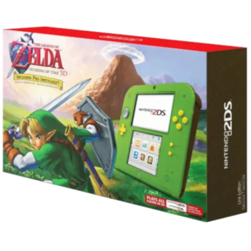 A consola Nintendo 2DS Link Green + The Legend of Zelda: Ocarina of Time 3D é a escolha ideal para fãs da saga ou para quem deseja explorar o vasto catálogo da Nintendo com uma edição especial, fiável e acessível.