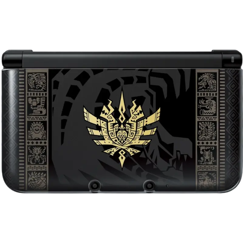 O exterior da consola apresenta um acabamento preto elegante com ilustrações prateadas do Gore Magala, o monstro emblemático do jogo, conferindo-lhe um aspeto distinto e colecionável. Esta edição inclui o jogo Monster Hunter 4 em formato físico, bem como uma caneta stylus correspondente ao design da consola e um cartão SDHC de 4 GB para armazenamento adicional.
