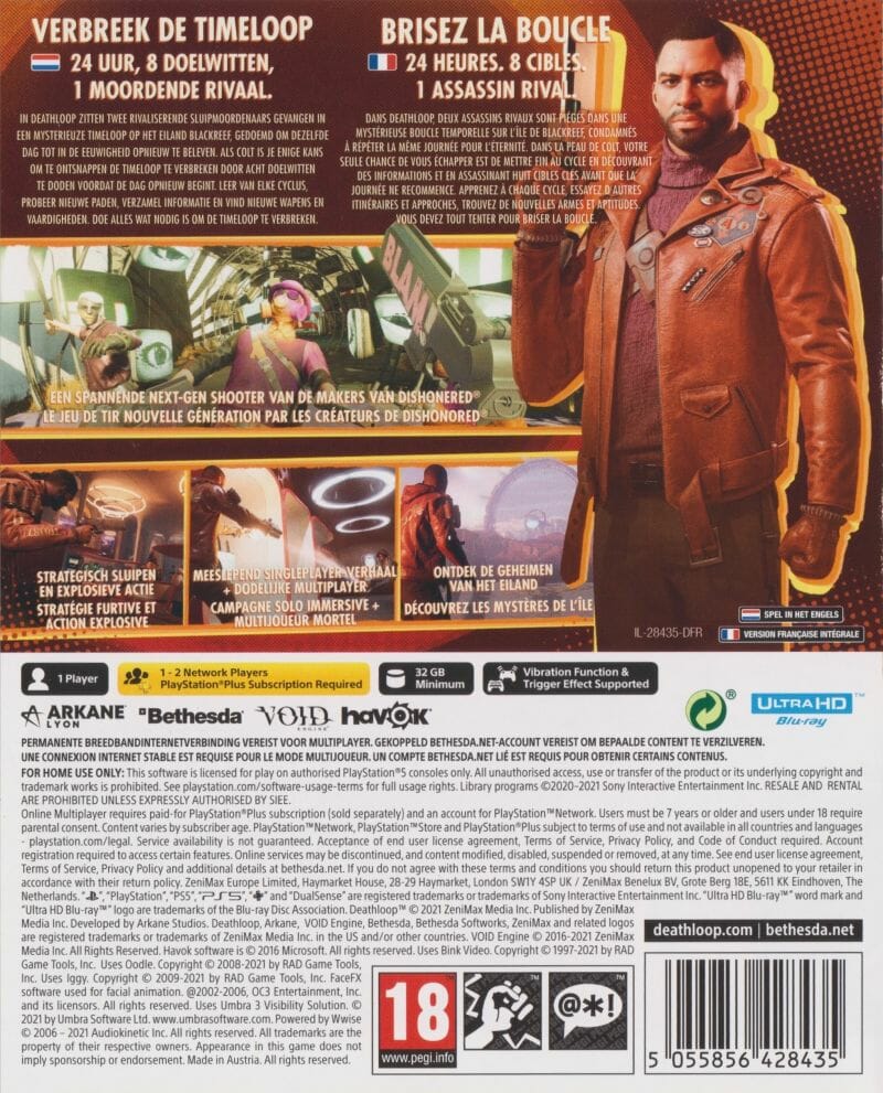 Em DEATHLOOP, dois assassinos rivais estão encurralados num misterioso tempo na ilha de Blackreef, condenados a repetir o mesmo dia por toda a eternidade. Como Colt, a única hipótese de fuga é terminar o ciclo através do assassinato de oito alvos chave antes de o dia ser reiniciado. Aprenda com cada ciclo – tente novos caminhos, recolha informações, e encontre novas armas e capacidades. Faça o que for preciso para quebrar o ciclo.