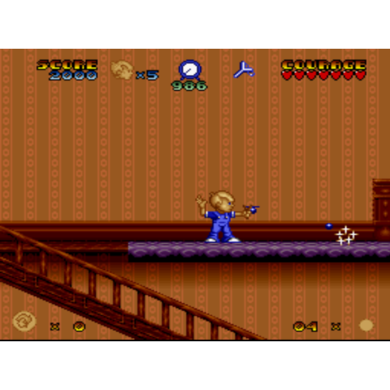 Dennis é um jogo de plataforma em cenários como Esgotos, o Parque e a casa do Sr. Wilson, cada um com um vilão no final do nível. A oposição no nível segue padrões de ataque padrão e geralmente pode ser evitada. você segue em frente, embora geralmente só progrida do canto inferior esquerdo para o canto superior direito.
