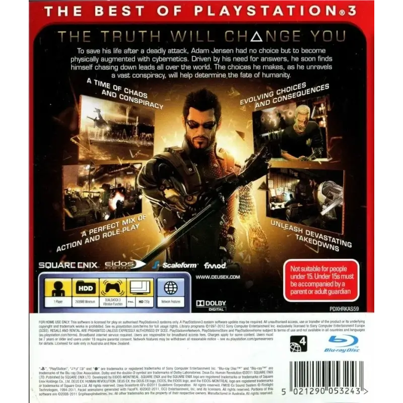Com ação estratégica, narrativa complexa e múltiplas abordagens de jogo, Deus Ex: Human Revolution (Essentials) PS3 é ideal para fãs de RPGs de ação, furtividade e ficção científica na PlayStation 3.