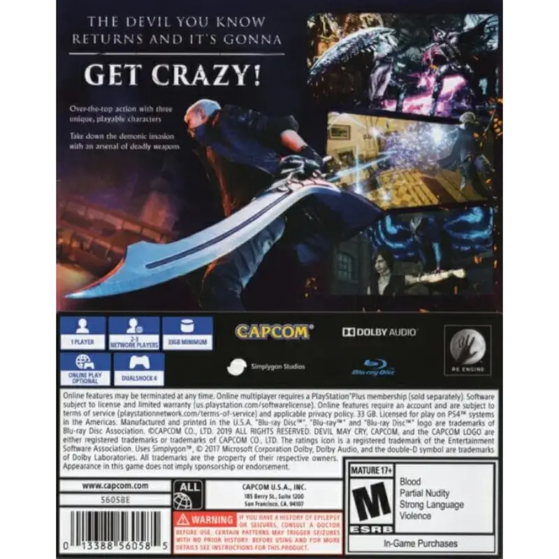 O Diabo que conhece regressa nesta novíssima entrada na série de acção de topo disponível no PC. Prepare-se para ficar completamente demoníaco com esta mistura de assinatura de acção estilizada de alta octanagem e outras personagens mundanas e originais pela qual a série é conhecida. O Director Hideaki Itsuno e a equipa principal voltaram para criar a experiência de acção mais insana, tecnicamente avançada e absolutamente imperdível desta geração! A ameaça do poder demoníaco voltou a ameaçar o mundo mais uma vez em Devil May Cry 5. A invasão começa quando as sementes de uma “árvore demoníaca” se enraízam na Red Grave City. Quando esta incursão infernal começa a tomar conta da cidade, um jovem caçador de demónios Nero, chega com o seu parceiro Nico na sua autocaravana “Devil May Cry”. Encontrando-se sem o uso do seu braço direito, Nero alista Nico, um artista de armas auto-proclamado, para desenhar uma variedade de armas mecânicas únicas Devil Breaker para lhe dar poderes extra para enfrentar demónios malignos, tais como o Empusa voador e gigantesco colosso inimigo Golias.