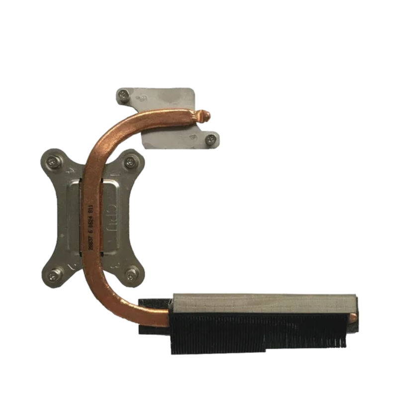 O design e tamanho específicos do dissipador podem variar dependendo do modelo exato do laptop e da configuração do processador. É um componente fundamental para manter a temperatura do processador dentro de níveis seguros, evitando superaquecimento que poderia comprometer o desempenho e a vida útil do laptop.