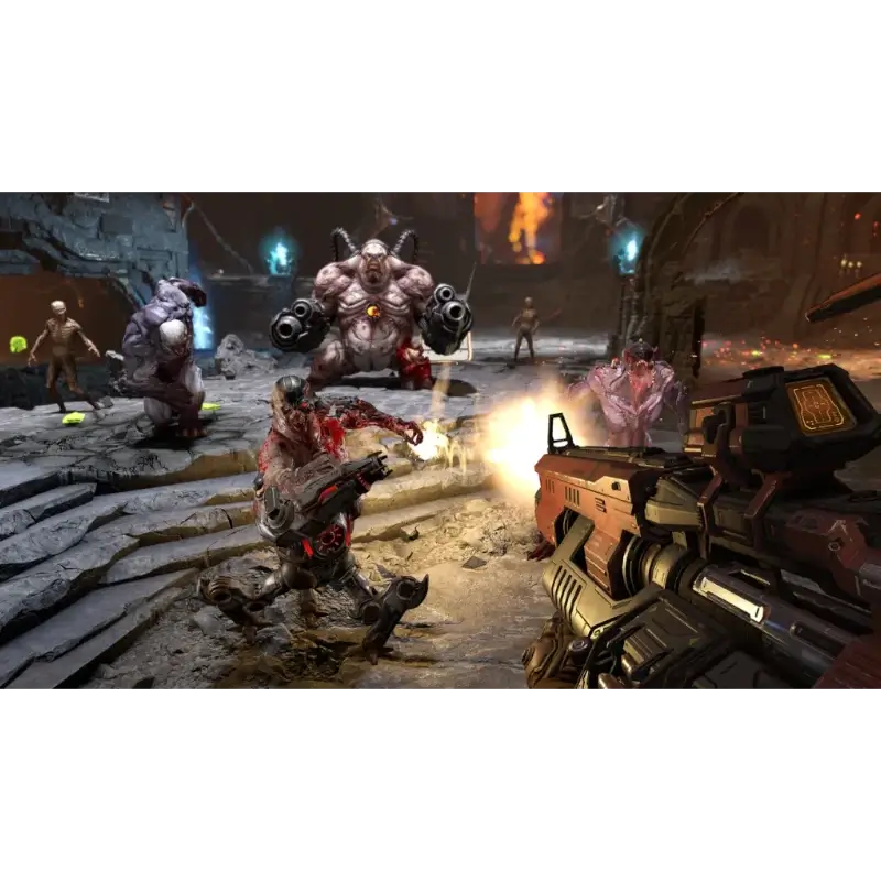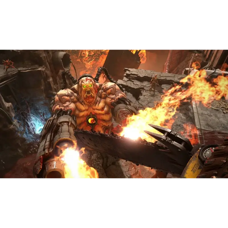 Os exércitos do inferno invadiram a Terra. Torne-se o Slayer em uma campanha épica para um jogador para conquistar demônios em todas as dimensões e impedir a destruição final da humanidade.## A única coisa que eles temem… é você. Experimente a melhor combinação de velocidade e poder em DOOM Eternal – o próximo salto no combate avançado em primeira pessoa.## Nível de ameaça do Slayer no máximo Armado com um lança-chamas montado no ombro, lâmina retrátil montada no pulso, armas e mods atualizados e habilidades, você está mais rápido, mais forte e mais versátil do que nunca.## Unholy Trinity Pegue o que você precisa de seus inimigos: Glory kill para saúde extra, incinere para obter armadura e demônios com motosserra para estocar munição e se tornar o matador de demônios definitivo.## Entre no Battlemode Uma nova experiência multijogador 2 contra 1. Um DOOM Slayer totalmente armado enfrenta dois demônios controlados por jogadores, lutando em uma partida de melhor de cinco rodadas de intenso combate em primeira pessoa.