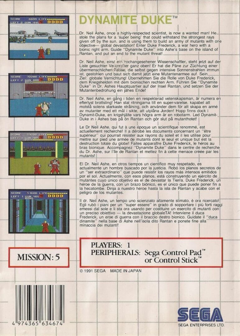 Duque, armado com uma metralhadora e braço cibernético, caminha de lado através de bases inimigas, atirando atiradores furtivos e travando combates corpo-a-corpo com chefes e o ocasional soldado que empunha facas.