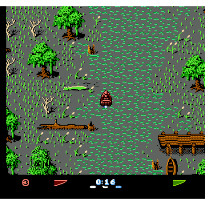 O modo multiplayer eleva a competição a outro nível, permitindo que você desafie amigos em duelos emocionantes, onde apenas o mais astuto e veloz emergirá vitorioso. Eliminator Boat Duel para o NES é mais do que uma simples corrida – é uma batalha épica pela sobrevivência e domínio nas águas pós-apocalípticas. Você está pronto para navegar rumo à glória ou ser eliminado na tentativa?