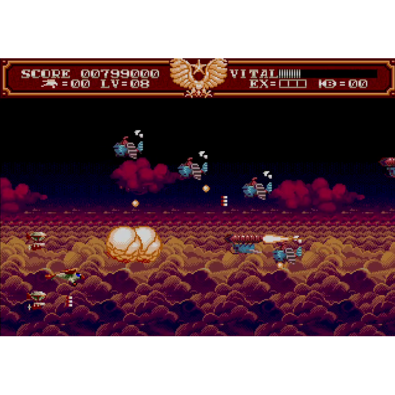 Os inimigos derrotados geralmente deixam power-ups, incluindo corações que reabastecem a saúde, bombas elétricas, pontos de bônus, 1-UPs, opções e pontos de experiência.