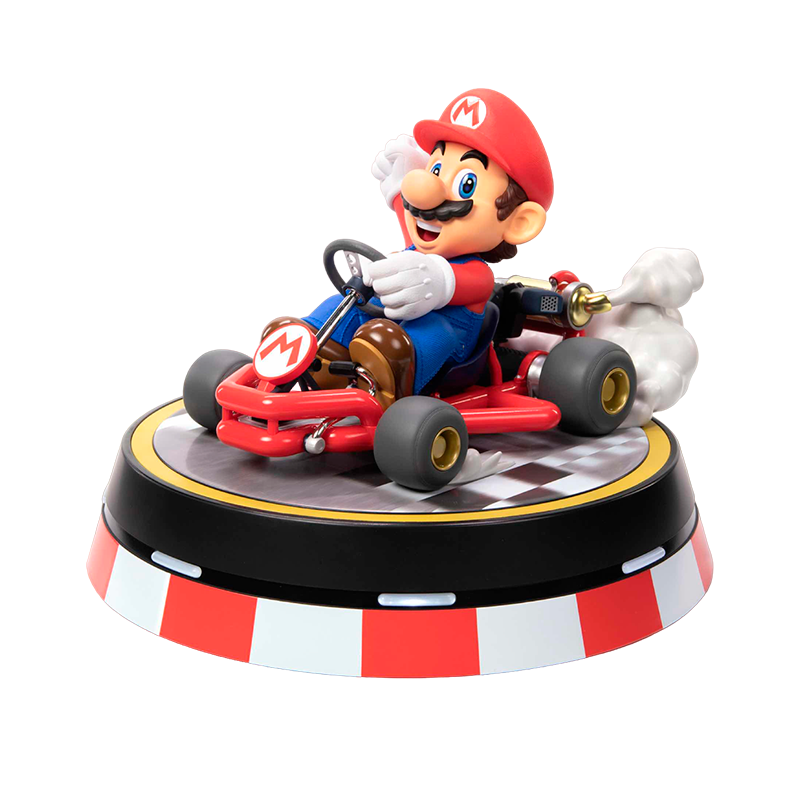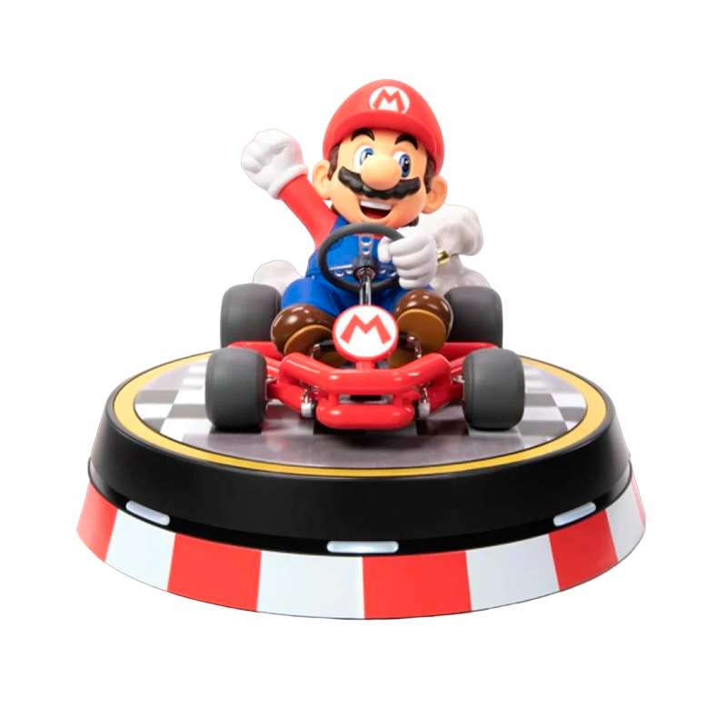 Com 22 cm de altura, esta estátua apresenta um Mario sorridente e confiante, pronto para vencer a corrida.