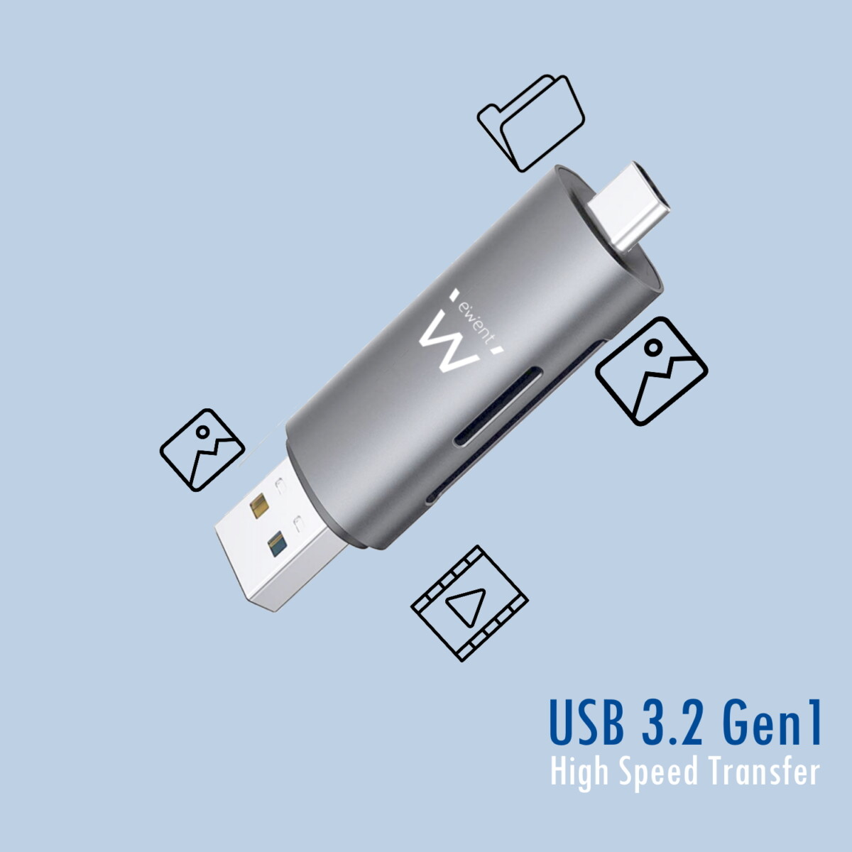 EWENT LEITOR DE CARTÕES COMPACTO USB 3.2 E USB-C