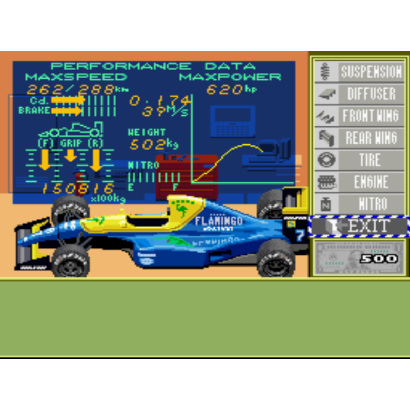 Em Exhaust Heat você dirige um carro de corrida e compete em uma série de dezesseis corridas em pistas de todo o mundo. Você ganhará dinheiro para cada corrida dependendo de sua colocação (por exemplo, o primeiro lugar rende $ 7.000), que você pode usar para comprar atualizações para o seu carro. Você precisa encontrar um bom equilíbrio entre as peças. Para testar a eficácia de suas peças, você pode fazer uma corrida de teste para ver como o carro funciona antes de comprar. Para não perder suas peças ou suas estatísticas de corrida. O o objetivo é simplesmente completar todas as dezesseis pistas; você receberá um bônus no final, dependendo do seu desempenho, para que haja um incentivo para jogar novamente e fazer melhor.