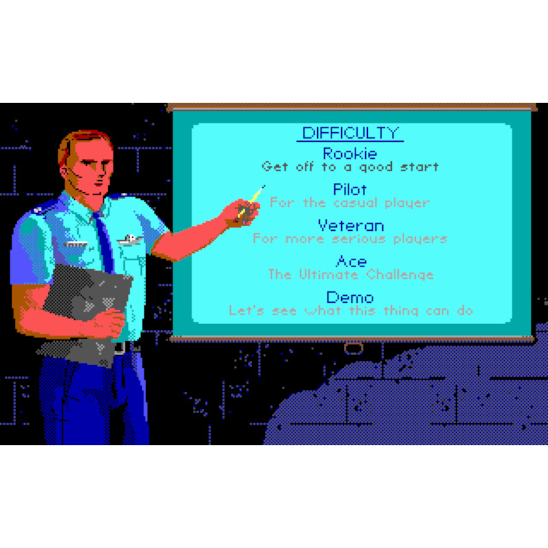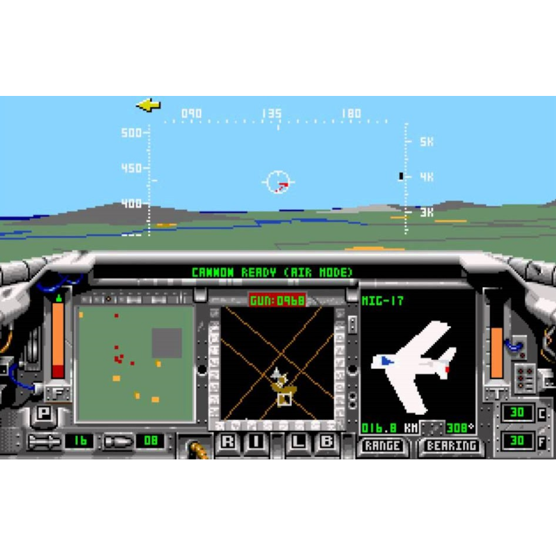 Existem 11 ângulos de câmera, incluindo vistas internas e externas do avião. Para ajudar os novos jogadores, há um modo de treinamento, com opções para desabilitar colisões e automatizar decolagens e pousos. A IA inimiga é responsiva, mas um computador de mira ajuda você a eliminá-los antes que eles possam fazer isso com você. O jogo incorpora dois “Modos do Diretor” que se afastam do seu cockpit para destacar eventos especiais que ocorrem em outras partes do mundo do jogo, como caças de lançamento de bases inimigas, locais de SAM lançando SAMs e seus mísseis atingindo o alvo.